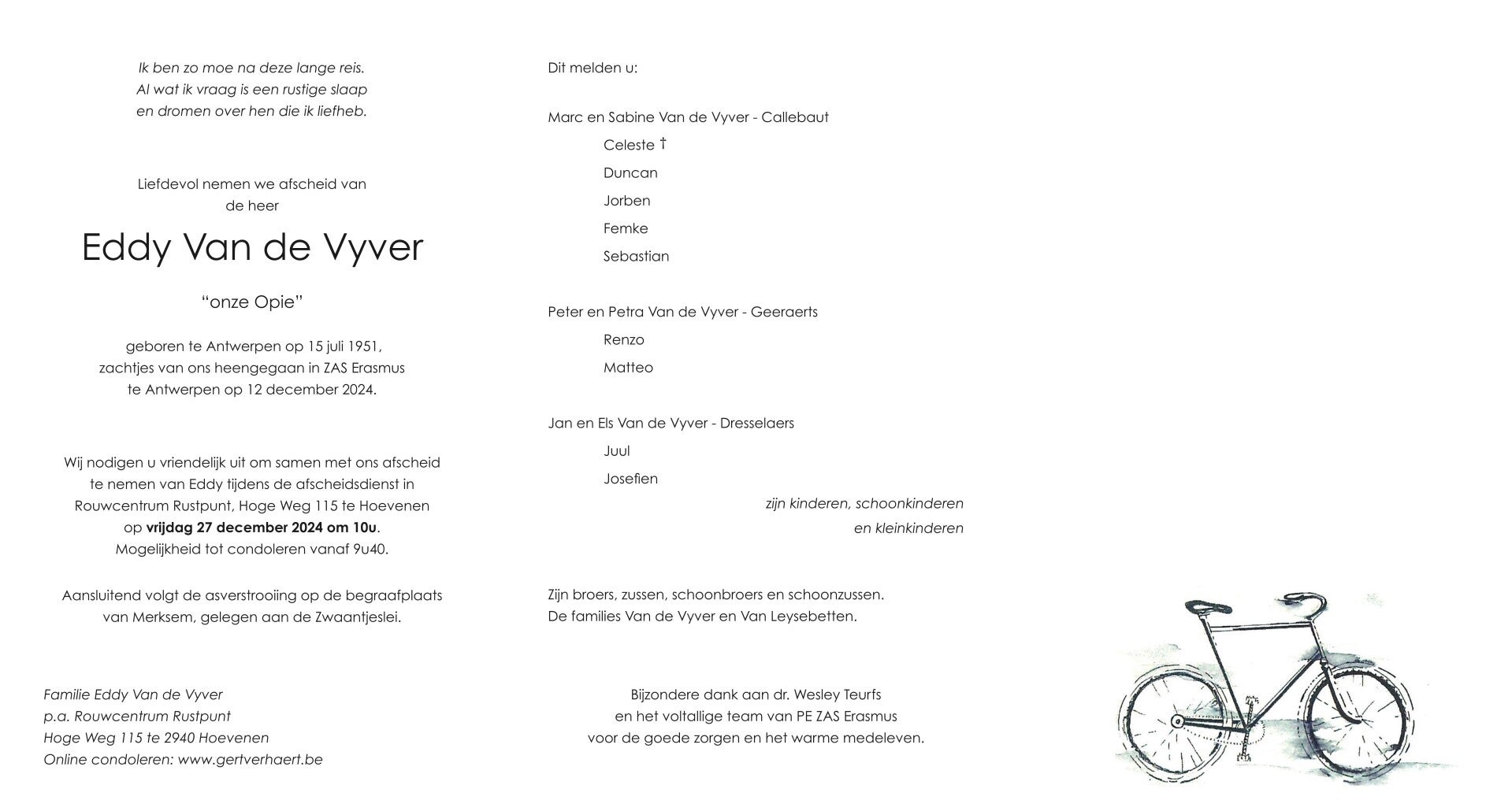 Mijn oprechte deelneming aan de Familie en Vrienden van Eric. Hij ontvalt ons op een veel te jonge leeftijd. Veel sterkte aan iedereen.