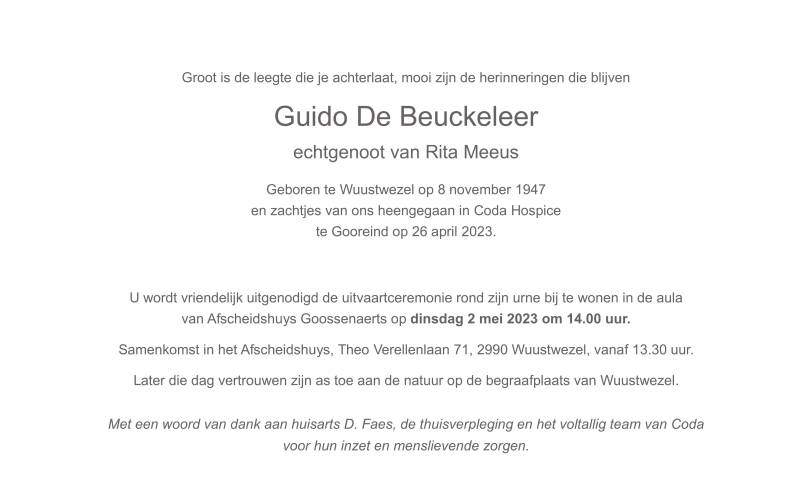 Mijn oprechte deelneming bij het overlijden van Guido , veel sterkte aan de familie en vrienden .