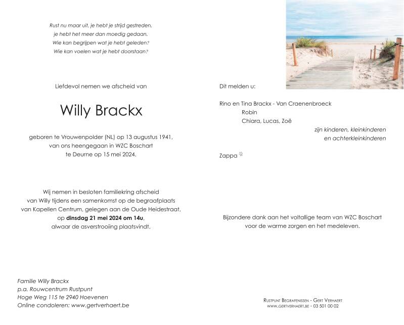 Mijn oprechte deelneming bij het overlijden van Willy , veel sterkte aan de familie en vrienden.