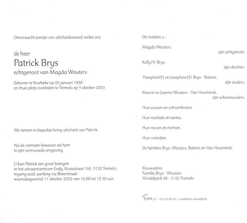 Overleden te Libramont op 2 augustus 2025 na een moedige en lange strijd tegen kanker