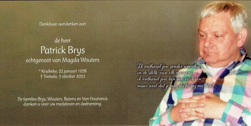 Mijn oprechte deelneming bij het overlijden van Patrick, veel sterkte aan de familie en vrienden.